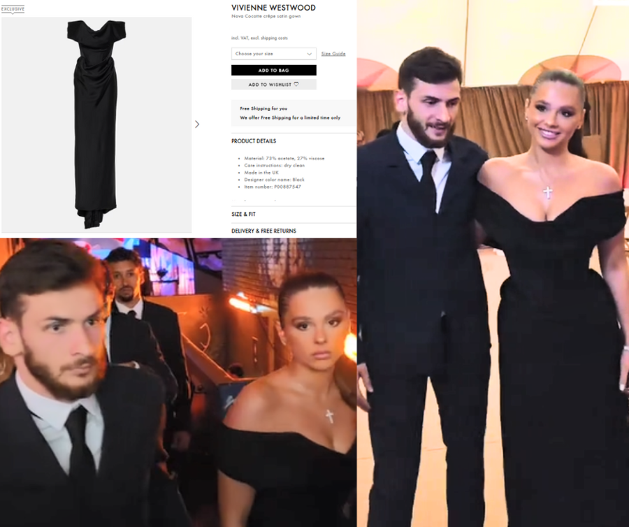 ნიცას კაბა ძალიან ჰგავს Vivienne Westwood-ის Nova Cocotte crêpe satin gown მოდელს, რომლის ღირებულებაც 5,620 ევროა.
