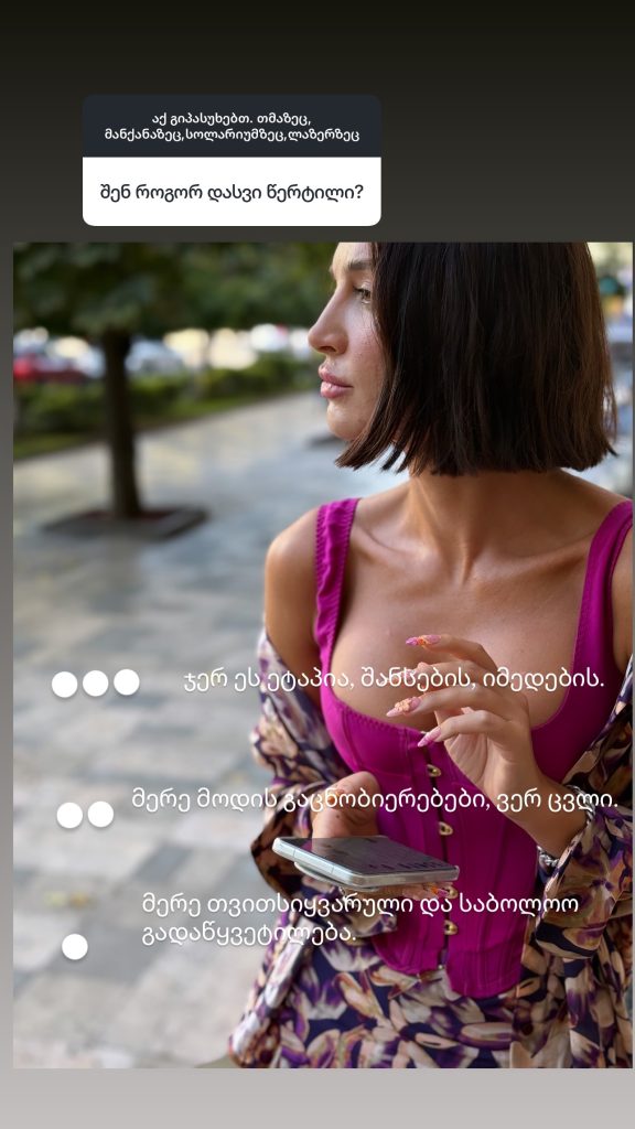 ალექსანდრა პაიჭაძემ ისაუბრა თავდაჯერებულობისა და საკუთარი თავის სიყვარულის შესახებაც დაშორების შემდეგ: