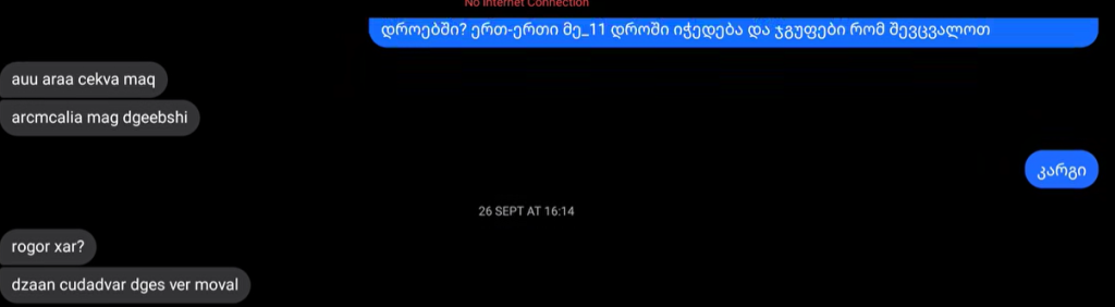 “ნ.ი-მ (რედ: გოგონას ვინაობას შეგნებულად არ ვასაჯაროებთ) (16 წლის) ამ მიმოწერით (ავრცელებს ვიდეო სქრინს, გიგა ავალიანსა და ნ.ი-ს შორის) აეჭვიანა შეყვარებული ა. გ. (17 წლის). ა.გ.-მ რ-სთან (არასრულწლოვანი) და ნ.ი.-სთან ერთად დაგეგმა მკვლელობა. ნ.ი-მ ზუსტად აჩვენა, სად შეეძლებოდათ ენახათ გიგა, რამდენიმე დღის განმავლობაში სისტემატურად უთვალთვალებდნენ, მაგრამ რადგან ჩემთან ერთად დადიოდა ვერ მოკლეს, ნახეს ხელსაყრელი მომენტი, აედევნენ სახლამდე და ბნელ ადგილზე მოკლეს”. ვიდეოსქრინი, რომელსაც მოკლული ბიჭის დედა ავრცელებს, ჩანს მასწავლებელსა და მოსწავლეს შორის საქმიანი მიმოწერა.