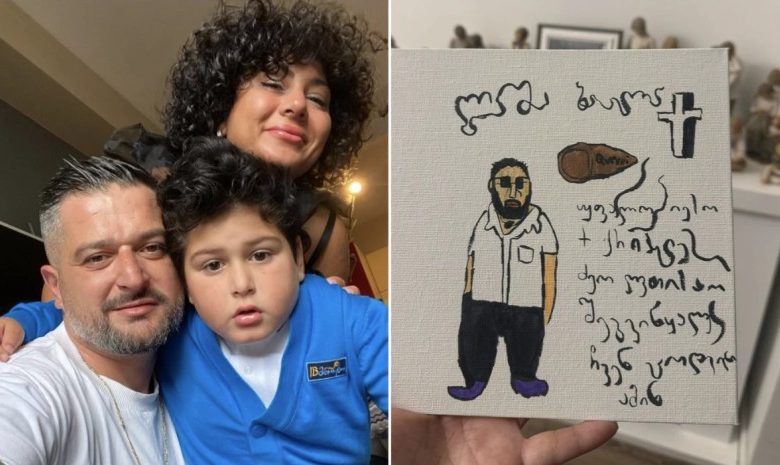 „წუხელ სანტი ბასლას მამა დაუხატია, მიყვარხარ ბაბუუ“, – წერს აკაკი ბასლანძე და სანტის ნახატს სოციალურ ქსელში აქვეყნებს.