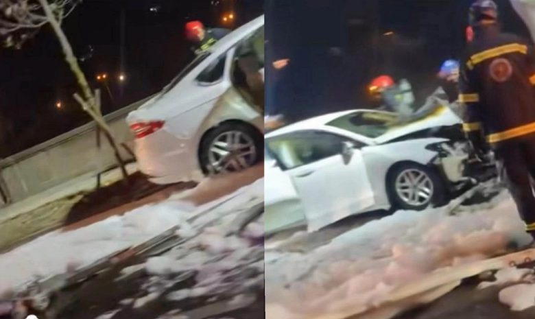თბილისში, სანაპიროზე ავტომობილი ხეს დაეჯახა და ცეცხლი გაუჩნდა.