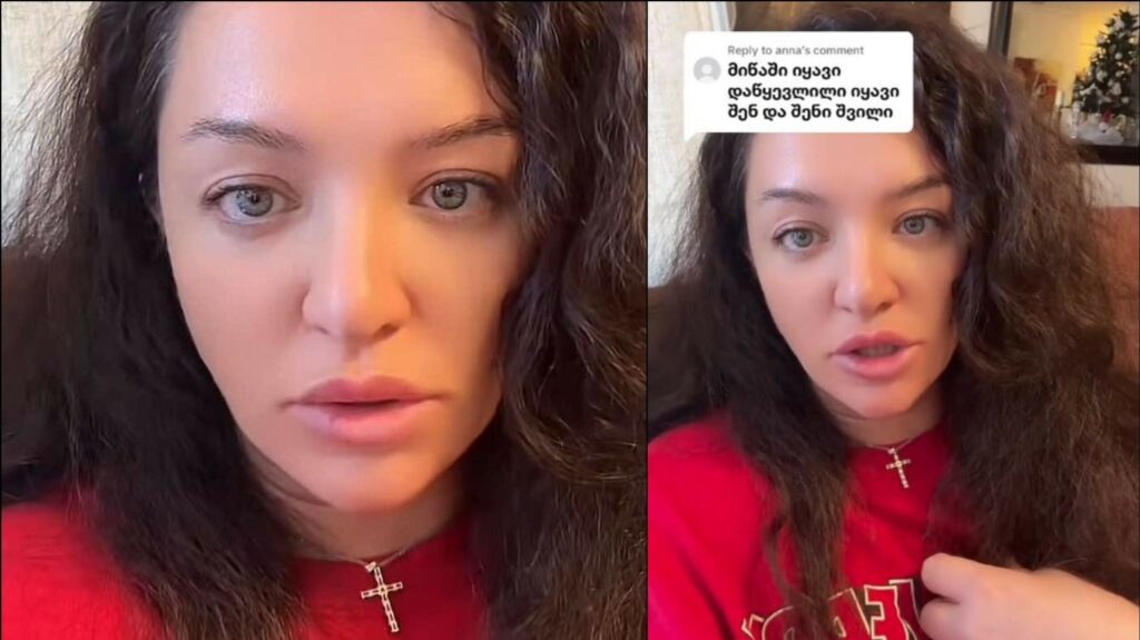 „ჩემი და პატარა ბავშვის ვიდეო დავდე და ქალის პროფილიდან, ვინმე ანამ დამიწერა, რომ მიწაში იყავი დაწყევლილი შენ და შენი შვილიო.. მესმის, რომ ვიღაცეებს არ მოგწონვართ, ან ჩემი პოსტები გაღიზიანებთ… არ ვიცი ყველას გემოვნებაში ვერ ჩავჯდები რა თქმა უნდა, არ შეიძლება ყველას მოსწონდე, თუმცაღა მართლა ღმერთის წინაშე ვარ მართალი და საკუთარ სინდისთან ვარ მართალი, რომ არავისთვის არაფერი დამიშავებია, არ მისურვებია ცუდი და არ დამიწყევლია. რატომ შეიძლება მოგინდეს ადამიანის დაწყევლა შვილთან ერთად არ ვიცი.. მე ამისი არ მეშინია ანა.